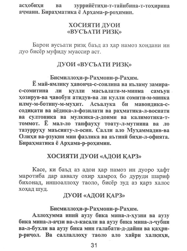 Китоби Дуоҳо барои пешрафти кор, саломатӣ, хушбахти, барори кор ва ғайраҳо.