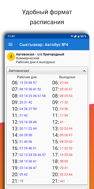 Komi-A هو تطبيق لسكان وضيوف جمهورية كومي. ستجد في التطبيق جدول الحافلات وأرقام سيارات الأجرة في مدن سيكتيفكار وأوكتا وفوركوتا وبيتشورا بتنسيق مناسب. يعمل حاليا.