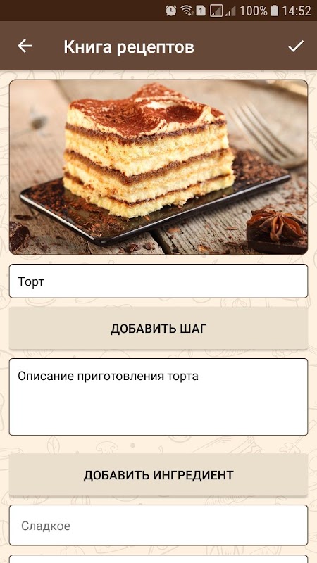 في تطبيق Cookbook ، يمكنك تسجيل الوصفات المفضلة للأطباق ومشاركتها مع الأصدقاء وتحميلها على هاتفك. يمكن تقسيم الوصفات إلى فئات ، بحيث يمكنك دائمًا العثور على أي طبق عن طريق تحديد الفئة المطلوبة. شهية طيبة!