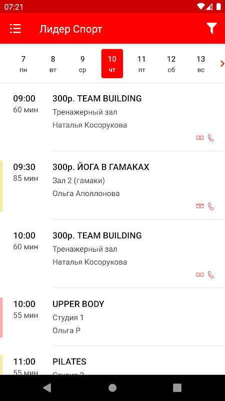 - عرض الجدول الزمني الحالي لجميع أنشطة النادي