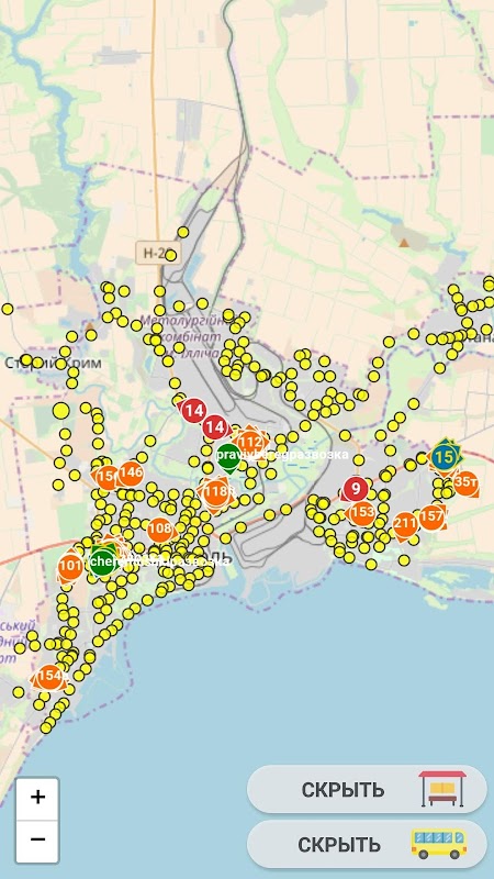 Карта общественного транспорта Мариуполя в реальном времени.