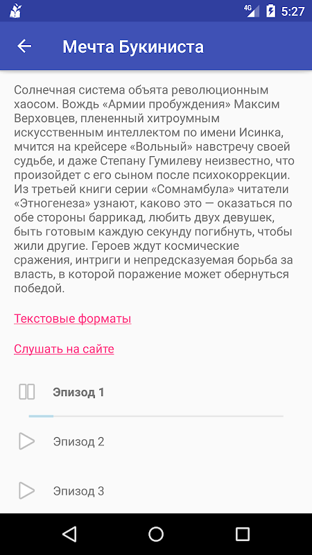 На сайте доступны озвученные книги: