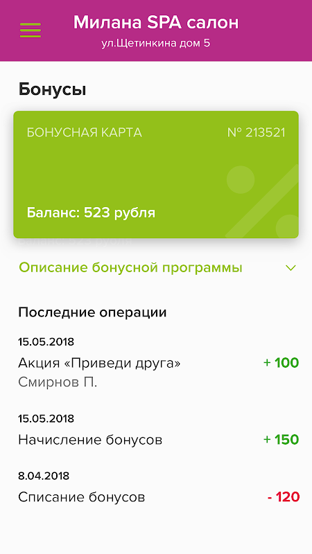 - حساب شخصي مع تاريخ جميع الزيارات السابقة والمستقبلية ، وكذلك الخدمات المفضلة