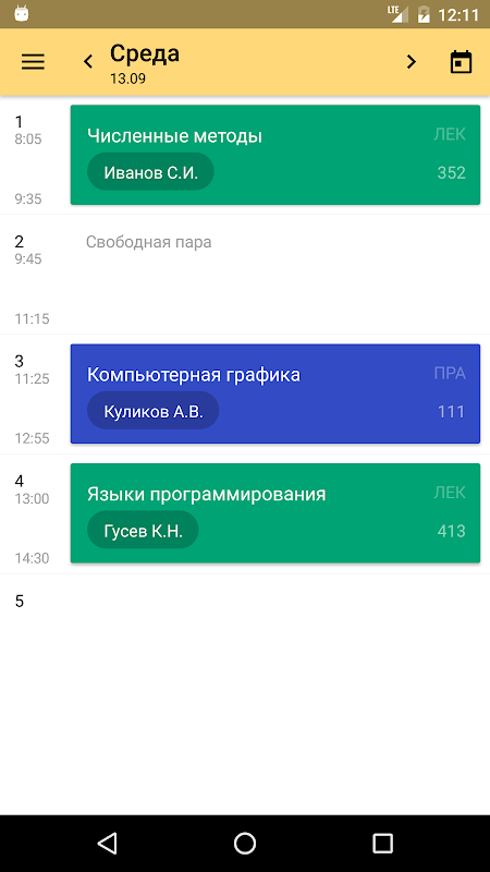 يوفر قسم "الجدول الزمني" معلومات حول جدول الفصول الزمني لتاريخ ويوم من الأسبوع. في شكل جداول ، يعرض معلومات حول المعلم والمجموعة الأكاديمية والدرس.