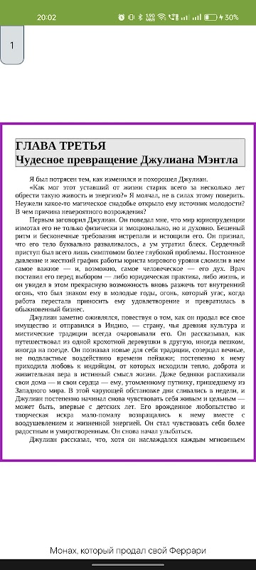 اتضح أنه لم يكن بحاجة إلى سيارته. كنت بحاجة للحكمة. لذلك بعد أن خسر من كل التوتر بأزمة قلبية ، باع كل شيء وذهب إلى الجبال. هناك وجد حكماء علموه الفضائل السبع ، وأخذوا منه وعدًا بأن ينقلوا تعاليمهم.