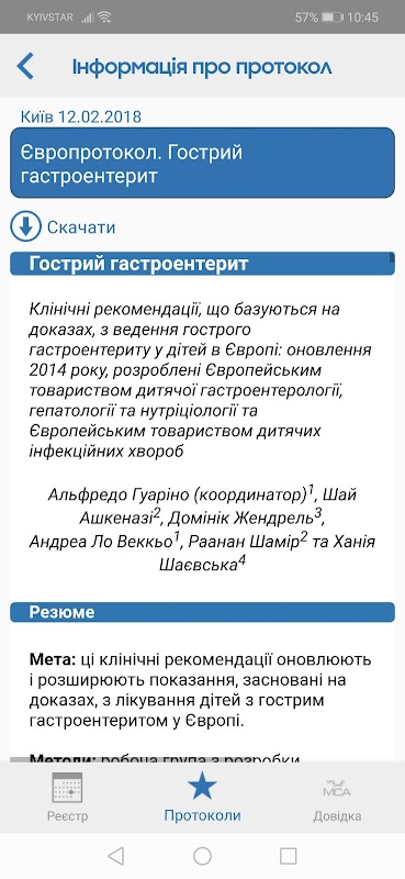 يحتوي هذا القسم على البروتوكولات السريرية الموحدة المعتمدة في أوكرانيا، وكذلك بروتوكولات العلاج (المبادئ التوجيهية) وفقا لقائمة مصادر المبادئ التوجيهية السريرية المعتمدة بأمر وزارة الصحة رقم 1422 بتاريخ 29 ديسمبر 2016.