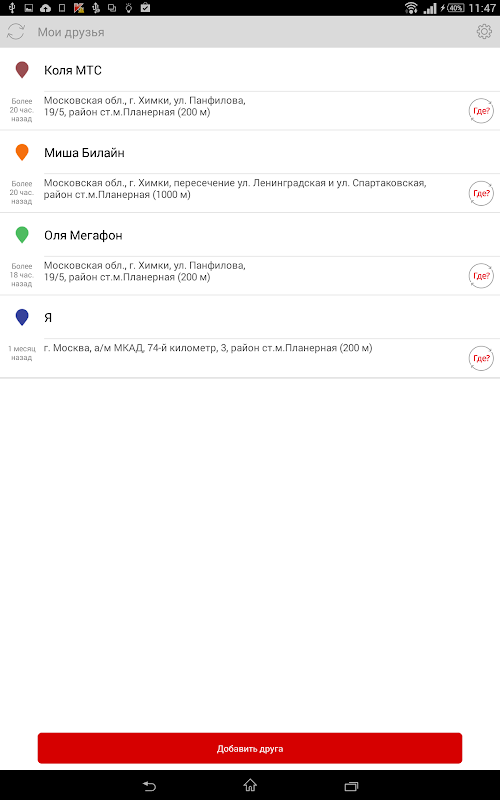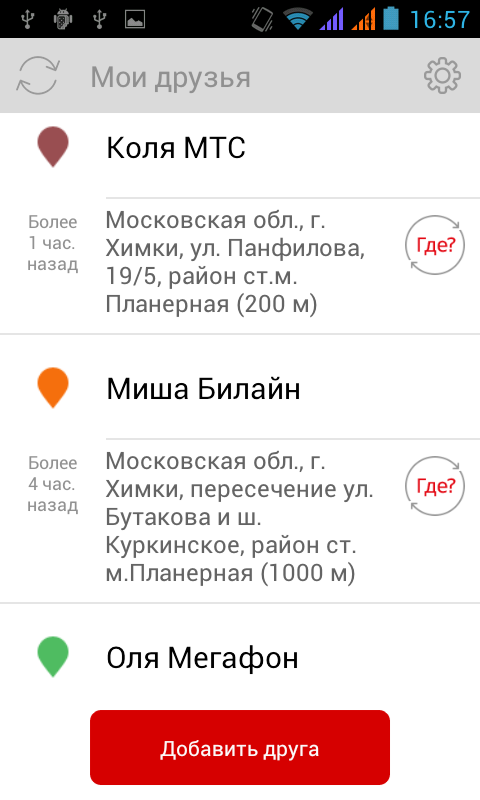 Приложение «МТС Локатор» поможет узнать, где сейчас находятся ваши друзья (абоненты МТС, МегаФон или «Билайн») и увидеть их примерное местоположение на карте города.