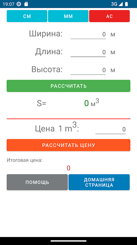 تطبيق لحساب الأمتار المكعبة ، وكذلك حساب السعر الإجمالي لحجم معين.
