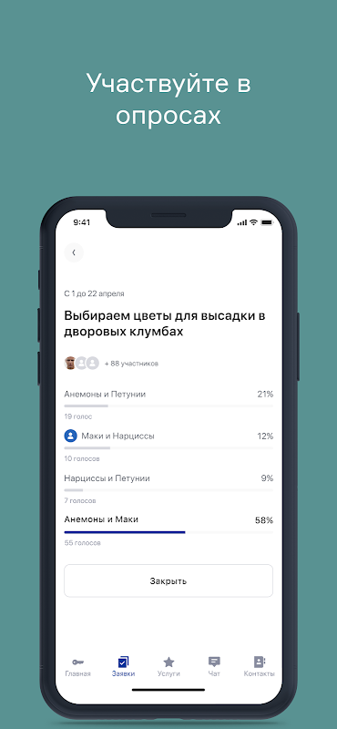 دفع الفواتير ، وتقديم الطلبات ، وتقديم قراءات العدادات ، والمشاركة في الاجتماعات العامة والاستطلاعات ، وتلقي الإخطارات من الشركة ، وعرض صور الكاميرا ، وفتح الحواجز / البوابات. يتم تنفيذ كل هذه الميزات في تطبيقنا.