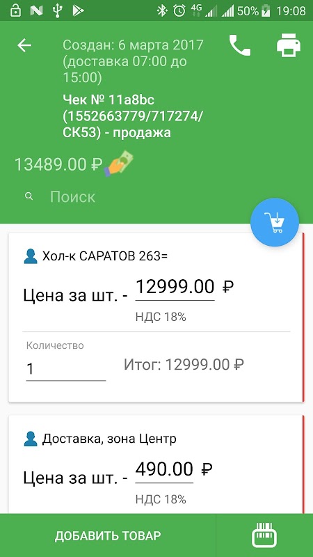 مجموعة من البرامج لاستخدام سجلات المحمولة النقدية (البنوك على الانترنت المتنقلة) سعاة، ووكلاء الشحن، مندوبي المبيعات عند زيارة التجارة، فضلا عن أي عمال آخرين اتخاذ دفع ثمن البضائع أو الخدمات. يوفر التطبيق إنشاء أو تعديل أو الشيكات الطباعة ونقل النسخ الإلكترونية من السلطات الضريبية والمشتري وفقا للقانون الاتحادي 54-FZ "على استخدام آلات تسجيل النقد ...". ويدعم البرنامج طباعة الشيكات للمدفوعات مع النقدية وغير النقدية. والاختيار يشير نظام الضرائب، نوع ضريبة القيمة المضافة، QR رمز (وصلة للاطمئنان على FNS الموقع)، سعر الخصم، ونوع الدفع (نقدا، وبطاقات الائتمان)، تفاصيل البائع وغيرها من البنود.
