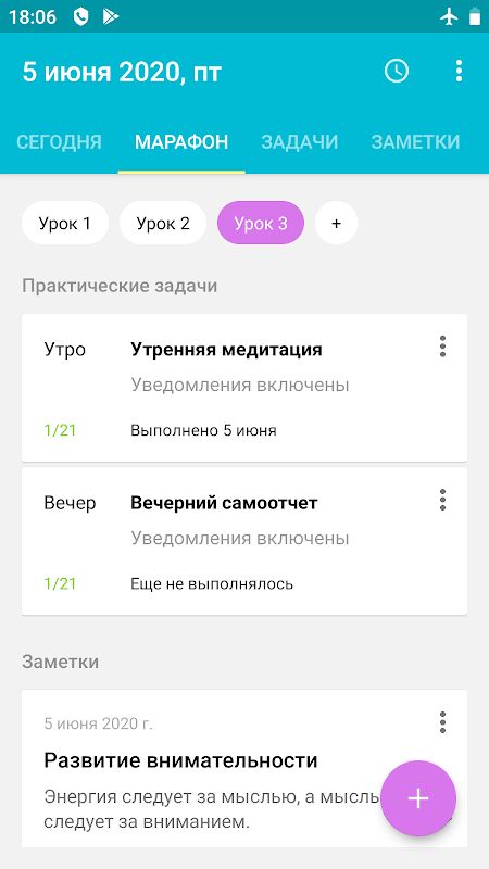 في التطبيق ، يمكنك إنشاء قائمة بالتدريبات وبرامج التطوير في أي مجال - التأمل واليوغا ، الأبوة والأمومة ، علم النفس ، محو الأمية المالية ، الفعالية الشخصية ، إلخ.