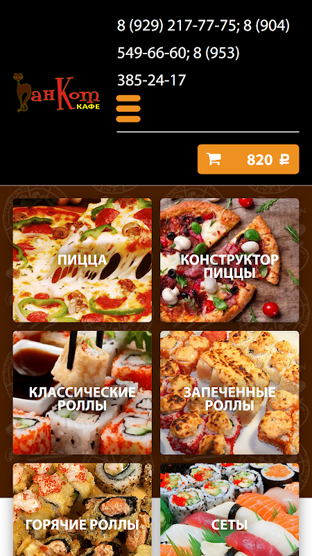 Мобильное приложение для заказа доставки еды из кафе Пан Кот