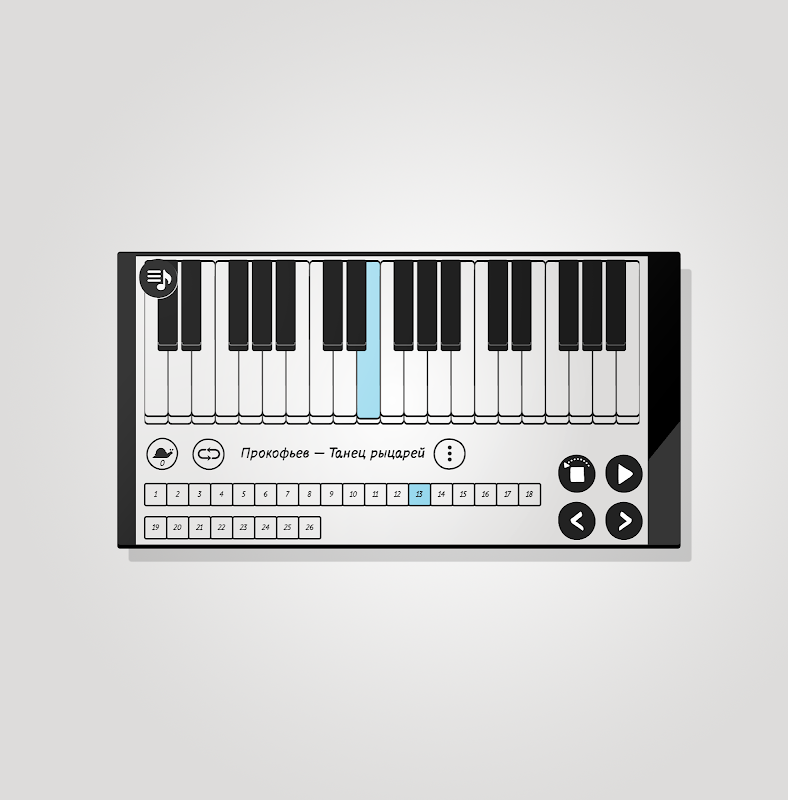 "Pianizer" القديم الجيد لأولئك الذين لم يتمكنوا لسبب ما من استخدام الإصدار الجديد بواجهة جديدة. هنا كل شيء كما كان. شظايا بسيطة من الألحان الشهيرة ، عرض إصبع خطوة بخطوة للعبة.