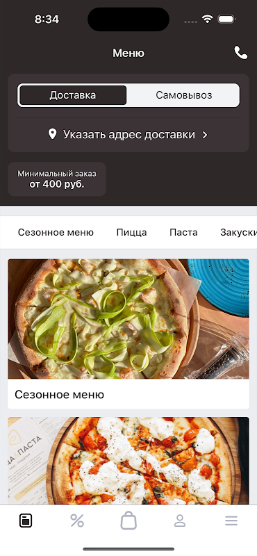 دائما في متناول اليد، في التطبيق - سجل الطلب، والعروض الترويجية لدينا. دعونا نتذكر عناوين التسليم الخاصة بك، وستكون إعادة الطلب أسهل وأسرع!