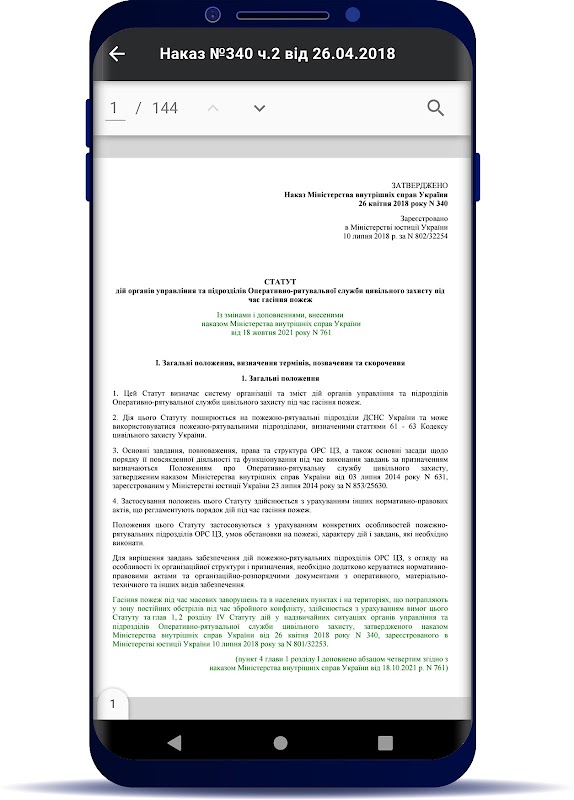 - PAL قياسي (MIA ترتيب №1470 من 20.11.2015r "بشأن الموافقة على تدريبات الأداء لإعداد الجنود والضباط العاملين في الحماية المدنية والإنقاذ التشغيلية لأوكرانيا DSNS"