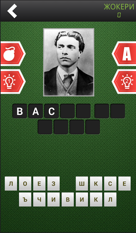 قم بفرز الحروف المختلطة لتخمين الشخص من الصورة. لكل إجابة صحيحة تحصل على جوكر ونقاط. ثمانية إجابات صحيحة من فئة تفتح واحدة جديدة.