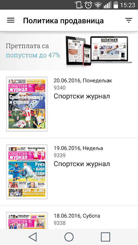 استمرار تقاليد واحدة من أقدم وأكثرها احتراما وسائل الإعلام في المنطقة، وتنشر صحيفتين يوميتين "بوليتيكا" و "الرياضة جورنال". بالاعتماد على تقليد عمره قرن من جهة والتكنولوجيا الحديثة من ناحية أخرى، قررنا أن نقدم لكم الخصوصية تطبيق المحمول، تستطيع من خلاله بكل يسر وسهولة مراقبة عدد من المنتجات وكالات الأنباء المفضلة لديك.