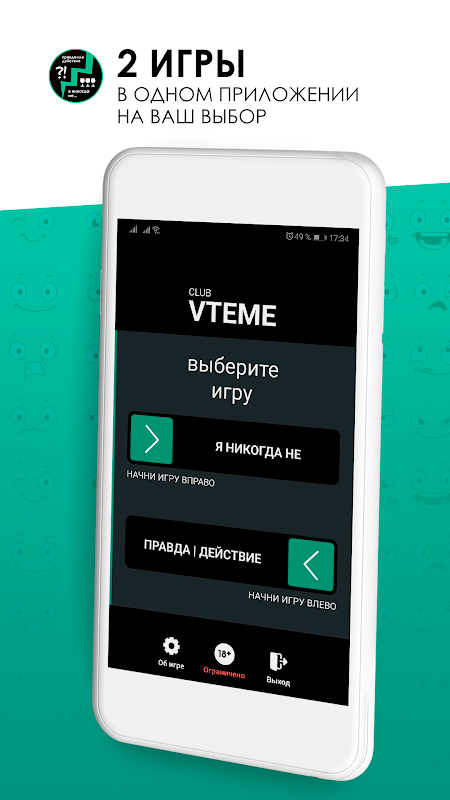Игры "Правда или Действие" и "Я никогда не..." позволит тусануть, расслабиться, улыбнуться и узнать друг друга лучше, идеально подходит для вечеринок, шумных компаний или игры вдвоем.