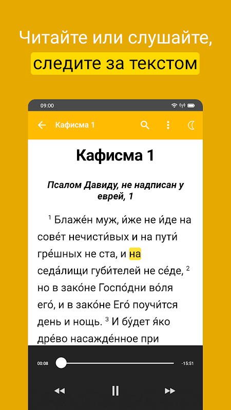 ・ يسمح لك تمييز الكلمات الفريد بمتابعة النص أثناء الاستماع ، ويساعدك على فهم الصلوات وتذكرها بشكل أفضل.