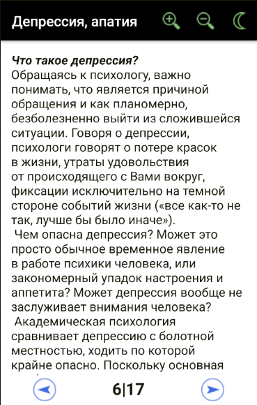 Приложение поддерживает режим "ночного чтения".Приложения запоминает, где вы остановились для каждой категории. Благодаря этому вы сможете позже возобновить чтение с того же места