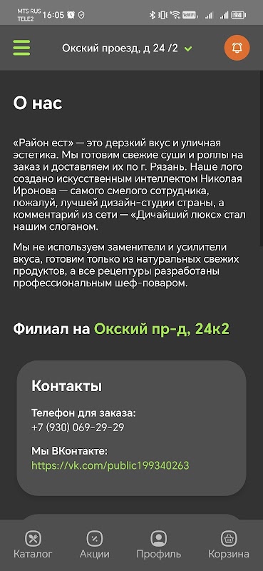 يتمحور موضوع "The District Eats" حول الذوق الجريء وجماليات الشوارع. نقوم بإعداد السوشي الطازج ولفائف الطلب وتسليمها في جميع أنحاء ريازان.