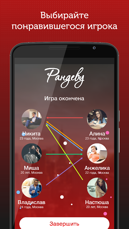 У Вас есть 2 минуты, чтобы узнать что-то интересное о собеседнике и в конце игры выбрать понравившегося человека.