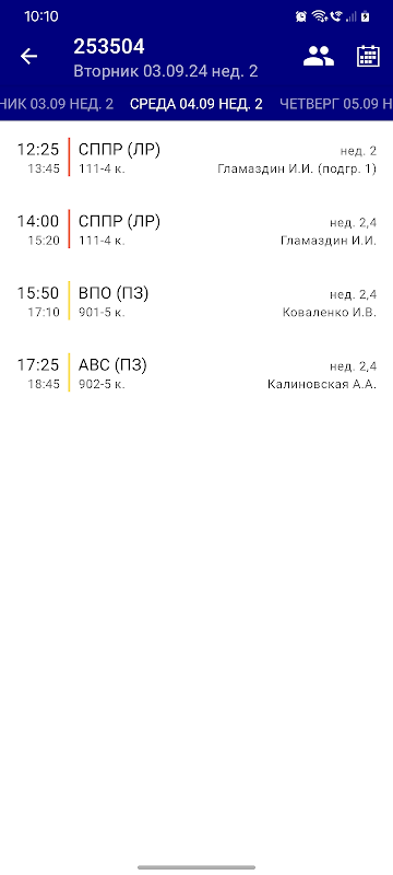 جدول الفصول الدراسية وامتحانات للطلاب والمعلمين BSUIR