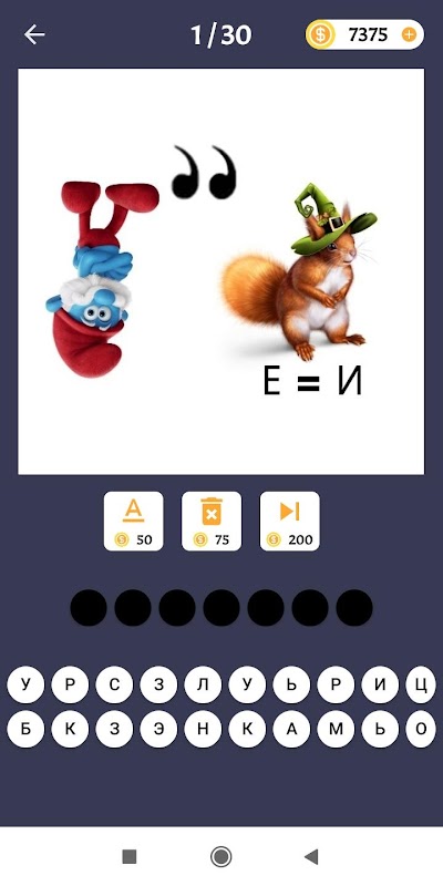 Увлекательное приложение Ребусы для всей семьи - отличный способ провести свободную минуту в любом месте: в транспорте, в очереди или сидя за столиком в кафе. К услугам пользователя подсказки, кнопка Помощь Друзей и деньги, используя которые можно показать одну из букв или перейти на следующий уровень.