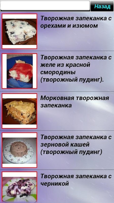 في تطبيق لدينا، وسوف تجد العديد من الوصفات المختلفة التي يمكن إعدادها في غلاية مزدوجة. وتنقسم الأطباق إلى فئات، وبالتالي فإن البحث سوف يستغرق بضع ثواني. التطبيق غير كامل، فإنك لن تحتاج إلى اتصال دائم بالإنترنت. تؤخذ صفات من المواقع وhttp://www.povarenok.ru/ http://parovarky.narod.ru. وصف تفصيلي للأطباق يمكنك ننظر إليها نفسه، فقط اتبع الرابط في الطبق المناسب.