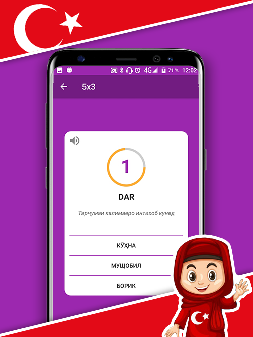 تعلم كلمات جديدة باللغة التركية بمساعدة Salom! التركية (في الطاجيكية) مريحة للغاية! التطبيق بالكامل في الطاجيكية!