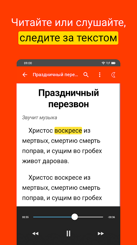 ・ يسمح لك تمييز الكلمات الفريد بمتابعة النص أثناء الاستماع ، ويساعدك على فهم الصلوات وتذكرها بشكل أفضل.