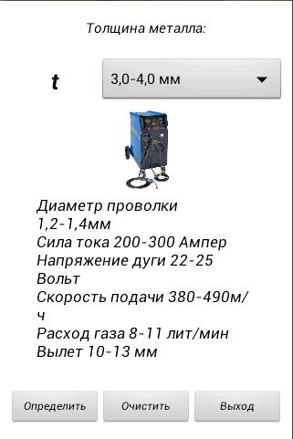 Расчёт силы тока, диаметра подаваемой проволоки, напряжение дуги, скорость подачи, расход газа, вылет в мм, от толщины свариваемого металла.