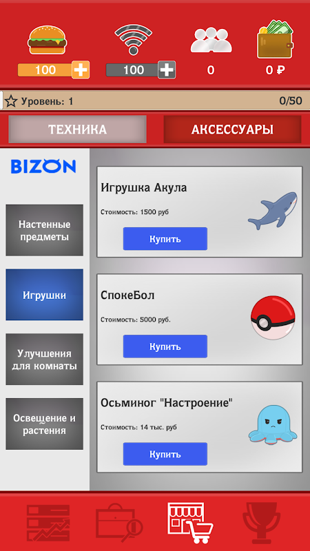 - Улучшайте свою комнату благодаря вещам с магазина;