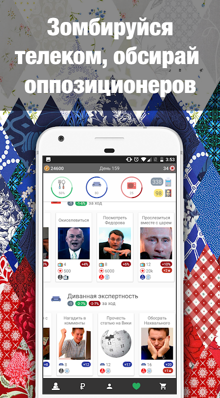Ощути себя в шкуре истинного Ватника – зомбируйся телеком, вступай в ряды НОД, нападай на штабы Навального, обсирай оппозиционеров, участвуй в дебатах с главными пропагандистами!