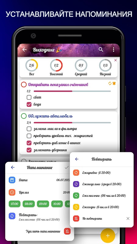 هل سبق لك أن نسيت أشياء مهمة؟ هل نسيت اللحظات المهمة أو المناسبات العائلية أو مواعيد الدفع؟ لا تقلق: استخدم مدير المهام والمتعقب المجاني والفعال هذا. سوف يذكرك بمهمة أو ذكرى سنوية، ويساعدك على إدارة الوقت والاستمتاع بالحياة، ويحتوي أيضًا على قائمة تسوق مدمجة مريحة، مع إمكانية مشاركتها في أي برنامج مراسلة.
