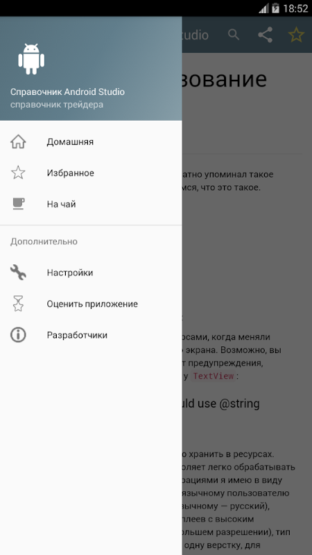 Приложение позволяет Вам иметь в кармане справочник для разработки приложений под Android. Ориентированный на начинающих и продвинутых разработчиков.