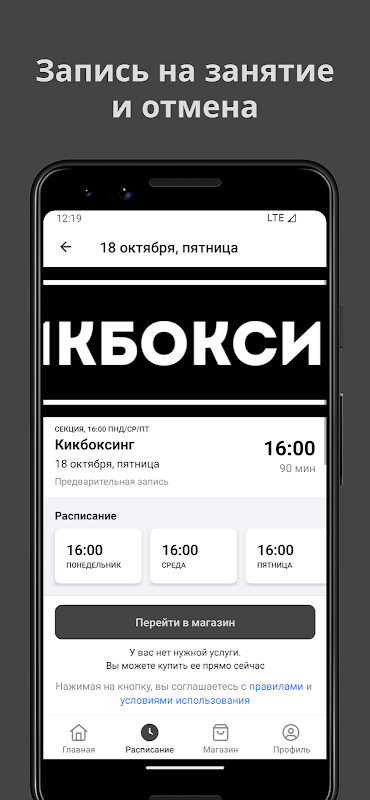 جدول التدريب، تجديد الاشتراك، الحساب الشخصي.