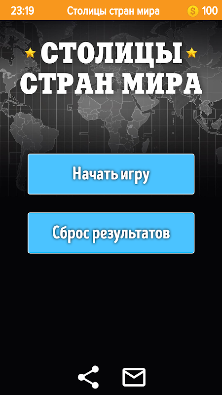 В этом приложении Вы сможете проверить и улучшить свои знания в области географии, а именно - столицы стран мира. Если Вы не знаете ответа на вопрос - его всегда можно пропустить кнопкой "Пропуск", а узнать правильный ответ при помощи кнопки "Ответ". За правильные ответы Вам будут начисляться поощрительные монетки, а за неверные - списываться. К пропущенным вопросам всегда можно будет вернуться позже.