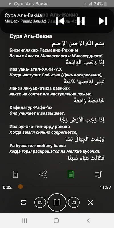 Al Wakia Mp3 Audio بدون انترنت ، ترجمة نصية إلى اللغة الروسية