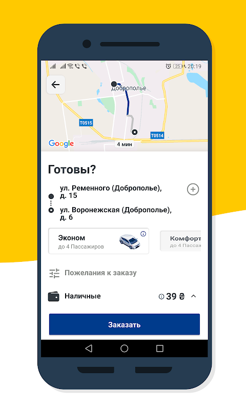 مع هذا التطبيق ، يصبح الاتصال بسيارة أجرة تجربة سريعة وممتعة. سوف تنسى ما هي المكالمة إلى خدمات إرسال سيارات الأجرة.