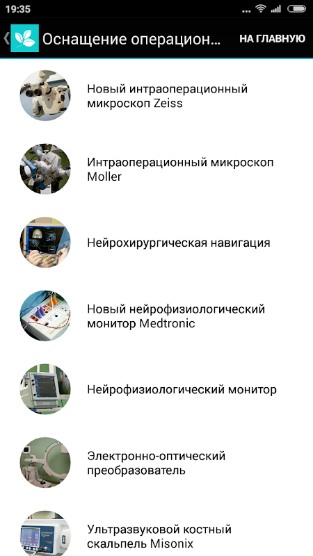 يحتوي التطبيق أيضا دليل من الأمراض، حيث ستجد وصفا للأمراض الأكثر شيوعا في العمود الفقري والدماغ، وكذلك معلومات عن العلاجات الجراحة العصبية التنظيرية.