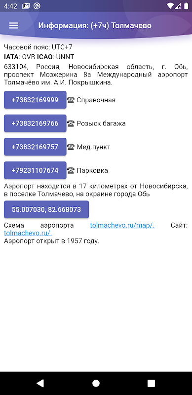 معلومات Толмачево: табло аэропорта APK