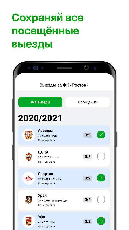 Приложение-помощник для фанатов футбола поддерживающих свой клуб в выездных матчах. Это маленькое приложение будет надёжно хранить все твои выезда, покажет твою статистику по городам, годам, стадионам и даже количество километров которое ты накатал за всё время.