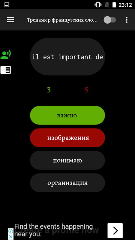 محاكي للكلمات الفرنسية. التطبيق للغة الفرنسية مجانا.