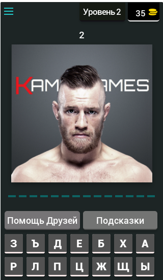 Совершенно новая игра!!! Насколько вы преданный фанат UFC? Считаете что знаете практически всех бойцов? Уверены? Тогда предлагаю вам проверить свои силы в абсолютно новой игре!!! И только потом не плачьте, что слишком сложно! Всего в игре пока 47 уровней, но всего их будет около 200. Вступай в группу KG: https://vk.com/kamil_games_official и следи за новостями!