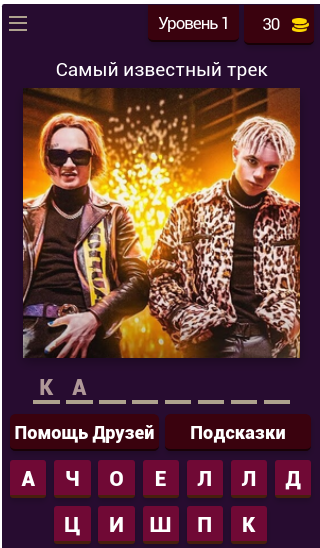 Правила просты - на каждом уровне тебе будет показана картинка из одного из клипов репера Моргенштерн и подпись к ней, которая будет являться подсказкой. Твоя задача собрать из предложенных букв название этой песни и перейти на следующий уровень. Если все-таки будут затруднения с ответом, то ты всегда сможешь воспользоваться дополнительной подсказкой. Уверяем, каждому под силу пройти нашу игру "Угадай Песню Моргенштерна" полностью :)