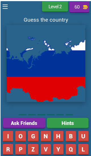 تظهر لك خريطة لبلد بدون اسم، ومهمتك هي إدخال الاسم الصحيح للبلد باللغة الروسية. استخدم معرفتك أو تلميحاتك لإكمال المستوى والانتقال إلى التحدي التالي. كلما أكملت مستويات أكثر، كلما ارتفع تقييمك في اللعبة!
