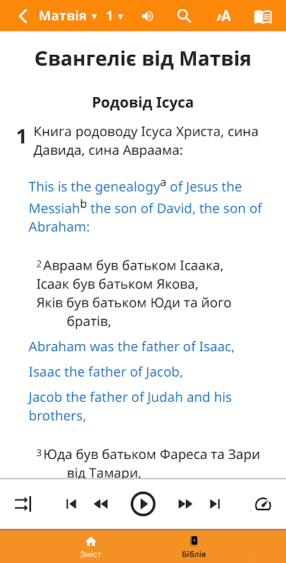 يمكن قراءة النسخة الدولية الجديدة من Biblica باللغة الإنجليزية آية بآية بجوار الترجمة الأوكرانية.
