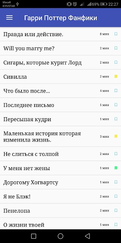 Приложения запоминает, где вы остановились. Благодаря этому вы сможете позже возобновить чтение с того же места. Также отмечает рассказ прочитанным (зеленый флажок) или в процессе чтения (желтый). Возле каждой Yandere истории указано приблизительное время прочтения.