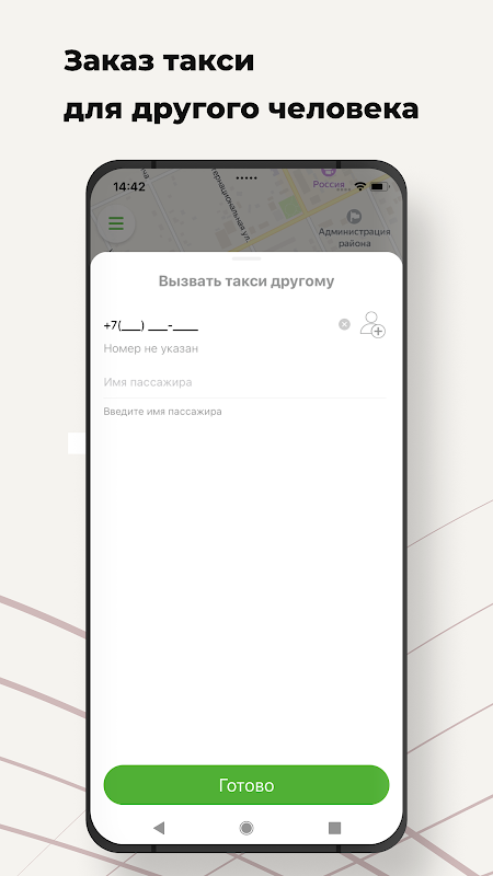 استخدم الخيار "اتصل بسيارة أجرة لشخص آخر" في قسم "الرغبات" وحدد رقم هاتفه. عند وصول سيارة الأجرة ، سيتم إرسال رسالة نصية قصيرة إلى الرقم المحدد ، وستتلقى رسالة في التطبيق.